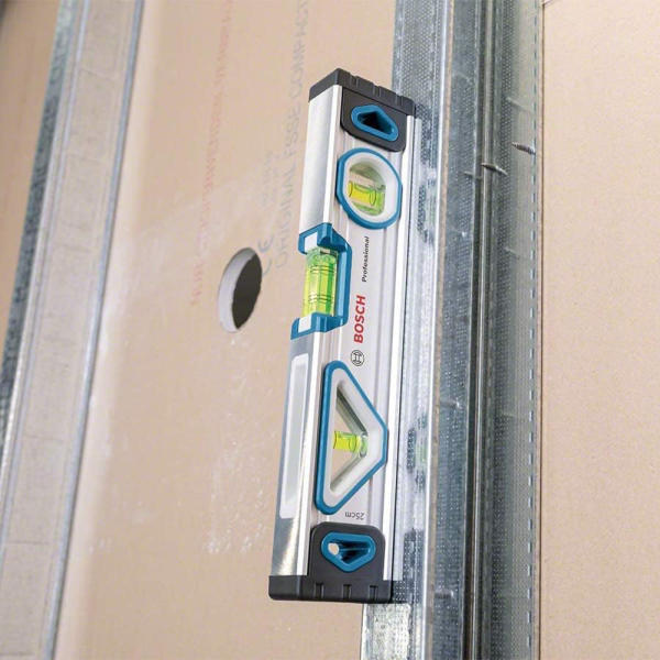 • A 25 cm hosszú mágneses vízmérték lehetővé teszi a könnyű leolvasást több pozícióból is