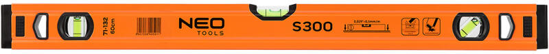 NEO TOOLS Vízmérték 60cm, alu, 3 libellás, S300, 60cm (71-132)